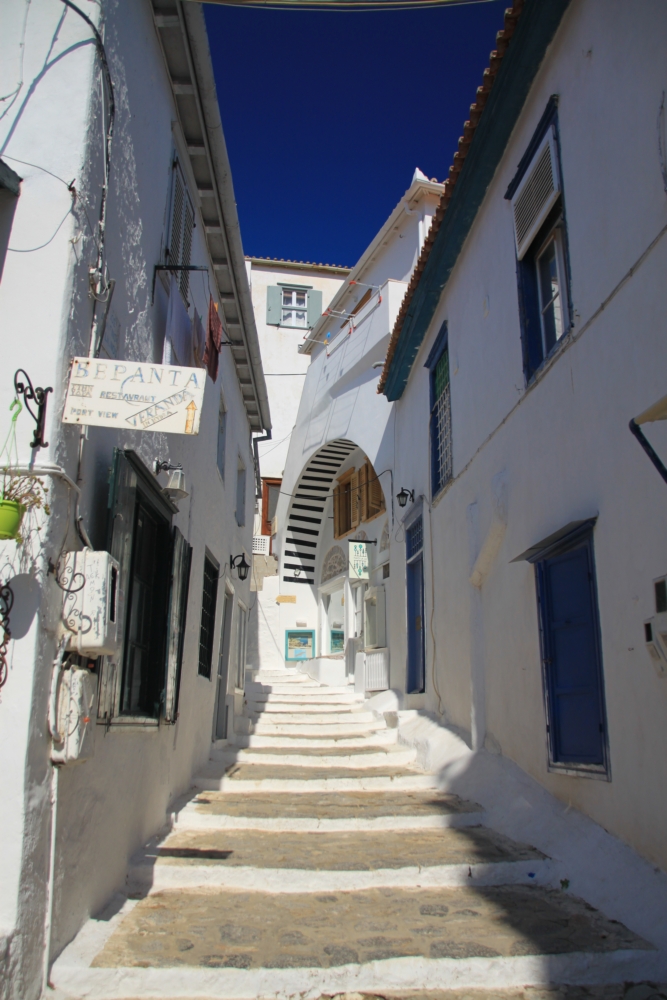 Город построен в бухте, дома карабкаются на склоны. Островные греческие городки выглядят очень мило, они такие соразмерные. Здесь живет большинство населения острова, всего около 2000 человек.