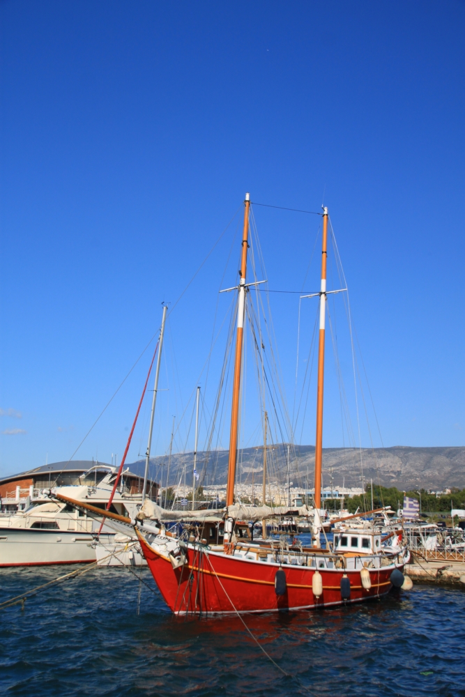 Утром следующего дня никто никуда не спешил. Во-первых, ветер продолжал фигачить 40 узлов, снасти свистели, а нам было не понятно, оставят ли нас в марине на вторую ночь. Общение с мариной Алимос очень невнятное: на звонок они реагируют требованием писать письмо, в письме сказали ждать обеденного времени, тогда они подумают. А пока мы с Раном ходили за продуктами. Пришли к выводу, что афинское Бирюлево на вид неприятнее московского. У нас хоть скверики, парки, пространство есть, а тут бетонные дома рядами стоят обшарпанные и усё.