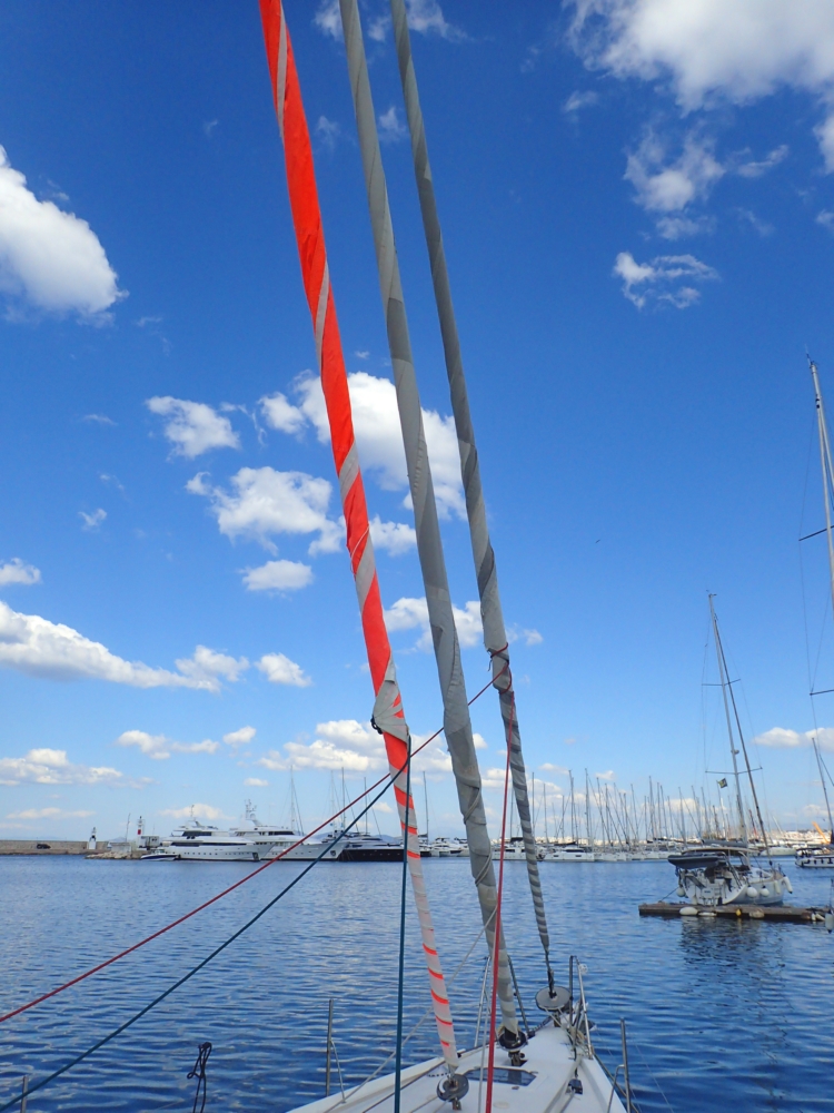 Для меня это выглядело очень забавно: в сложных условиях я полностью концентрируюсь на том, что делаю, иначе конец или кранец улетит в воду. Привязала я один кранец, глядь, а на лодку высадились двое с тузика. Привязала я второй кранец, глядь, а они уже рулят и рассказывают свой грандиозный план. Сложность была вот в чем: в марине швартуются к пирсу кормой, надо давать задний ход. При таких условиях давать задний ход нельзя по двум причинам: стоит поднять киль, и яхта станет неуправляемой, у корпуса слишком большая парусность. Во-вторых, мощности мотора при таком ветре на задний ход не хватит. Поэтому делали пиратский разворот, как молодой Джек Воробей в ПКМ-5, ну почти. Только там накидывали сезни на скалу и резко разворачивались на 90 градусов, а наши маринеро на ходе вперед накидывали дальний швартов к крайнему месту на пирсе. Швартов становился шпрингом и нас медленно двигало вбок, пока все подтягивали яхту. Было круто, хотя наш капитан и сам бы наверняка справился. Но депозит в 5000 евро был нам дорог и мы не протестовали :-)