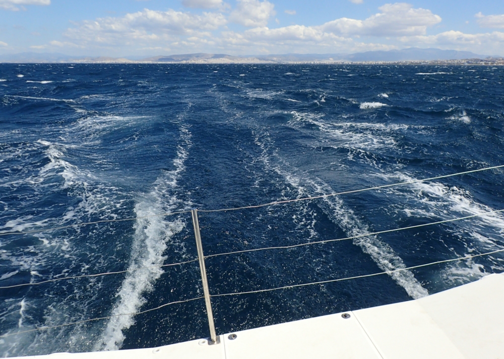 На следующий день нам надо было возвращаться в Лаврио. Ветер немного поутих, 25 узлов с порывами до 40, то есть обстановка оставалась сложной.