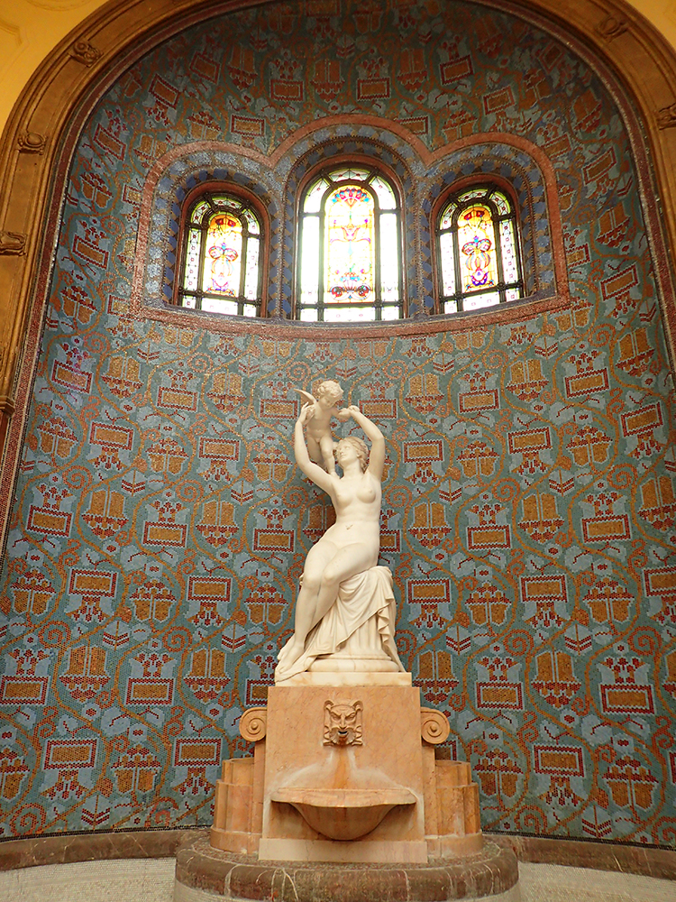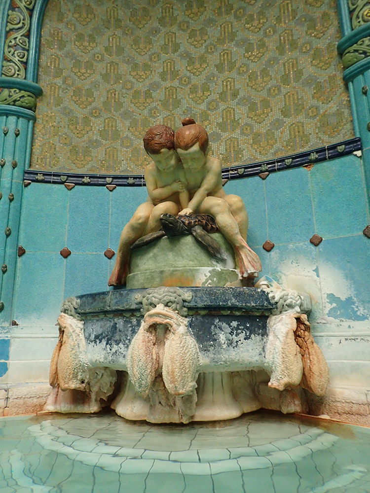 В этих купальнях нет многих тысяч людей, поэтому все более чинно и тихо. Интерьеры с витражами, мозаиками и статуями.