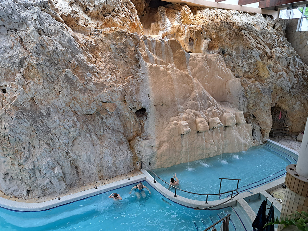Мы плескались в Сеченях три часа, исследуя по очереди внешние бассейны, внутренние бассейны и сауны. В бани можно и нужно приносить свою еду и питье, потому что с едой тут бедновато, а есть вам все равно захочется.