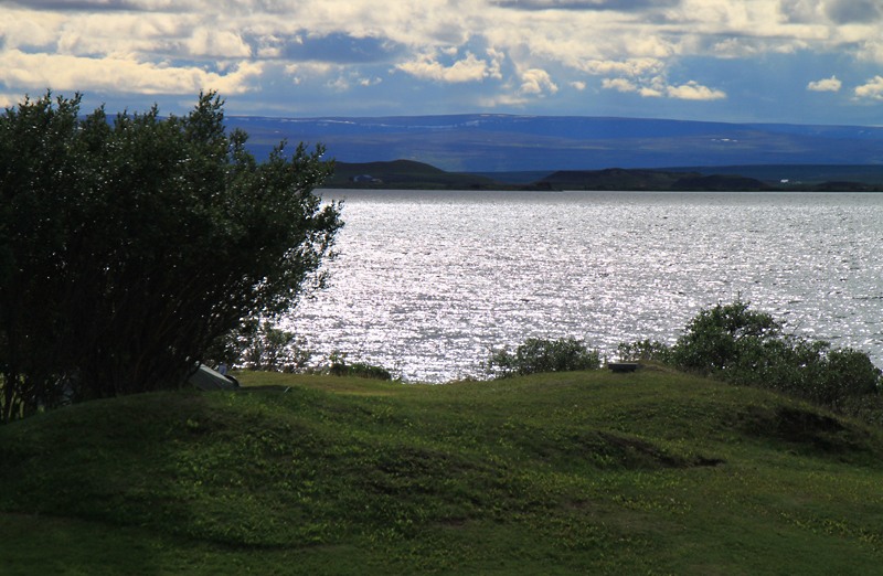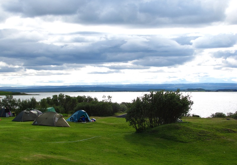 Приехав к озеру, мы поселились в Рейкьяхлиде, в кемпинге Bjarg. Он расположен на берегу озера, что выгодно отличает его от других кемпингов в округе: