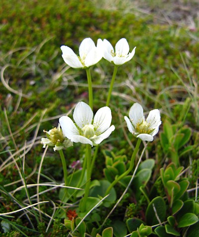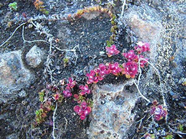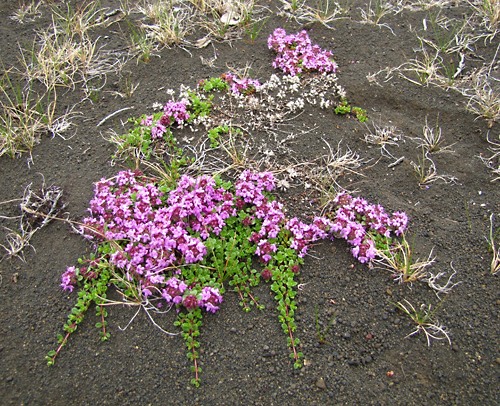 В траве растут исландские цветы - обычно они яркие, но очень маленькие.