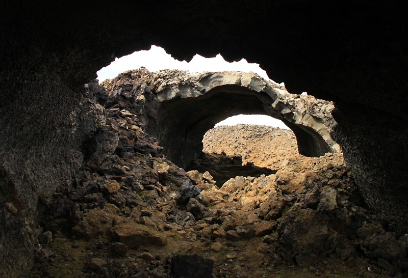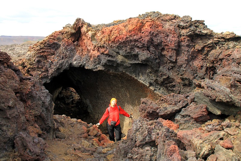 По дороге наблюдали лавовые пещерки и тоннели, образованные во время извержения скопившимися газами.