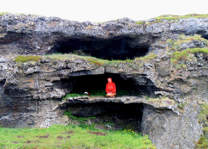 В этой трехэтажной лавовой пещере несколько часов спустя мы будем прятаться от дождя: