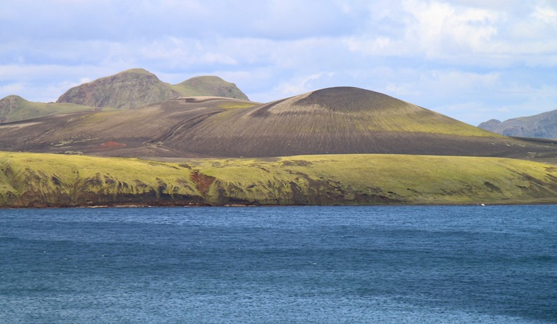 Зелень на горах - это не трава, а нежный мох, которым покрыты исландские тундры.