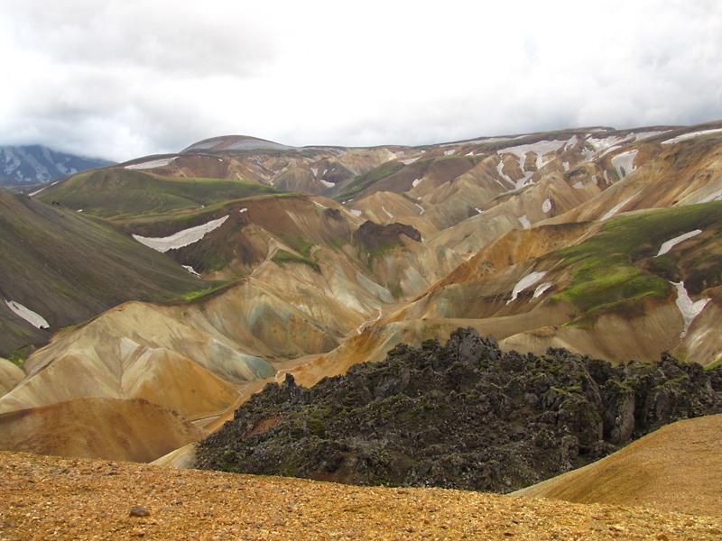 В центре острова людских поселений нет, зато есть национальные парки, и Ландманналойгар - один из самых известных. Помимо горячих источников там есть разноцветные, ни на что непохожие горы из риолита.