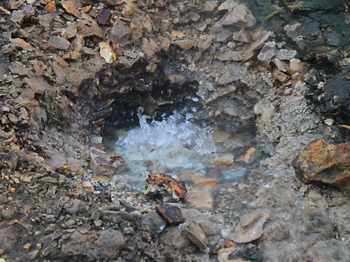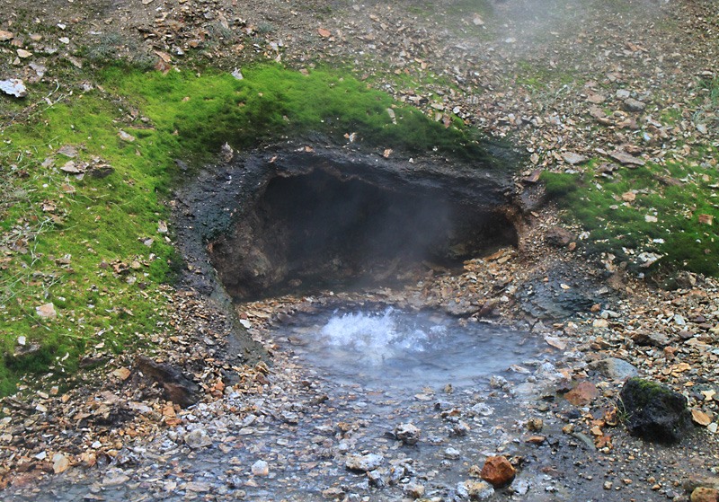 Я впервые находилась возле бурлилок так, что можно было рассматривать их близко и всячески пообщаться с ними, в том числе совать в них пальцы. Последнее надо делать аккуратно, потому что вода все-таки кипит.