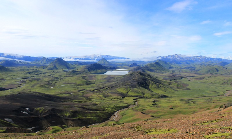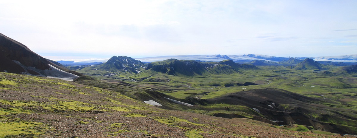 С гребня особенно хорошо было снимать панорамы. Вдалеке виднеется озеро Альфтаватн.