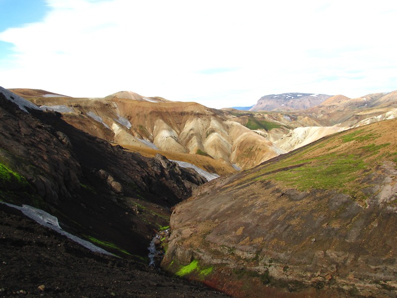 До середины июля долины ручьев забиты снегом, и, говорят, кое-где нужны ледорубы. В сентябре снег выпадает опять. Полтора месяца погода считается годной для того, чтобы пройти по тропе Laugavegurinn. Хорошо, что мы не поехали в июне, как изначально собирались.