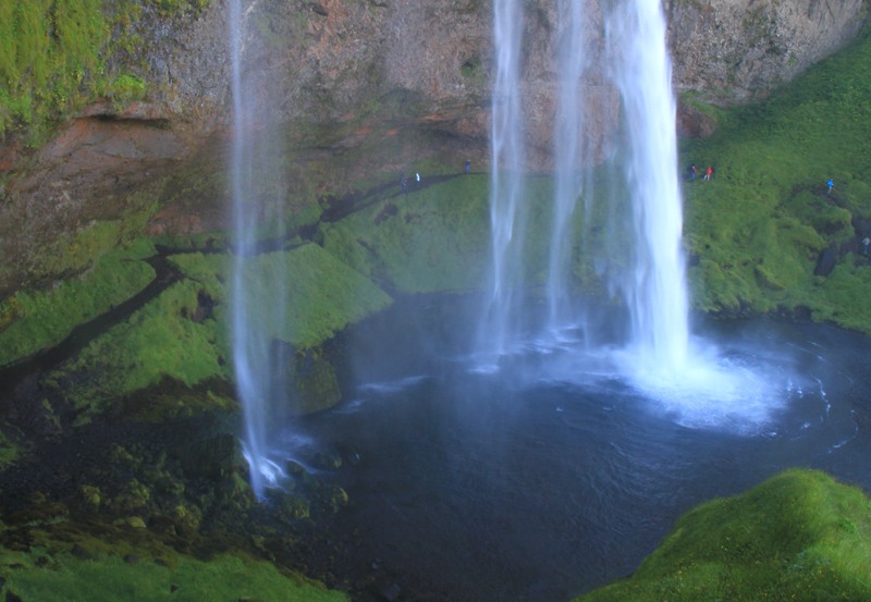 Между водопадом и стеной есть тропинка, можно там погулять, хотя там мокро и земля скользкая.