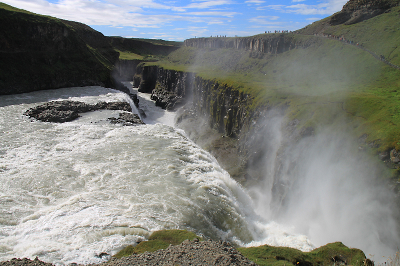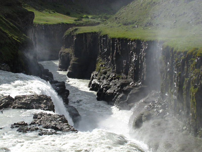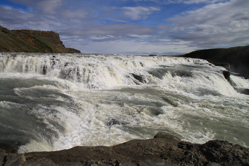 Всей этой красоты могло бы не быть. Тут в начале 20 века собирались строить ГЭС: много электричества утекает бесхозно. Но у земли был хозяин, местный фермер, и его дочь Сигридур много лет жизни посвятила защите Гутльфосса. Водопад удалось отстоять, а рядом с ним теперь стоит памятник настойчивой женщине.