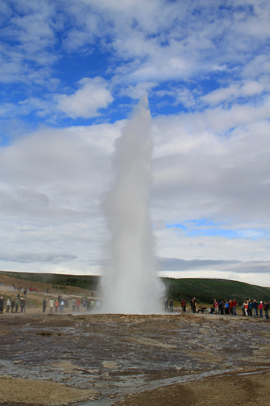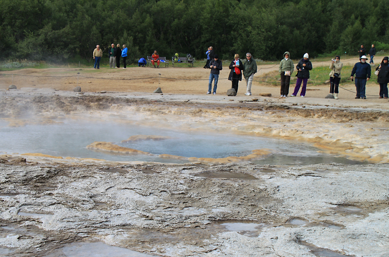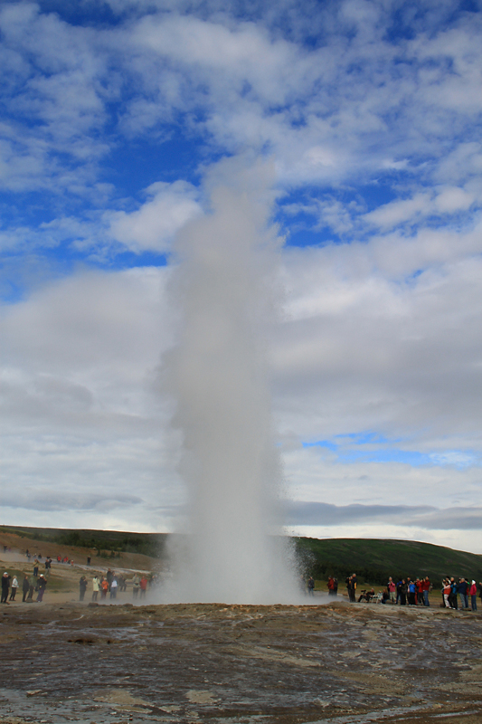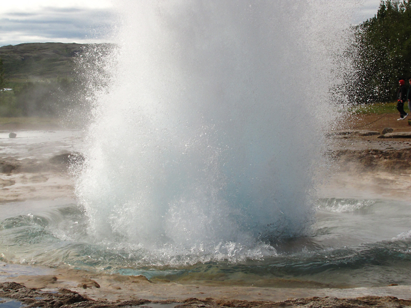 На самом деле, есть целый парк гейзеров, из которых активно функционирует вовсе не тот, по имени которого назвали всех остальных. Сам Гейсир уснул, а перед туристами за него отдуавется Strokkur - "Маслобойка".