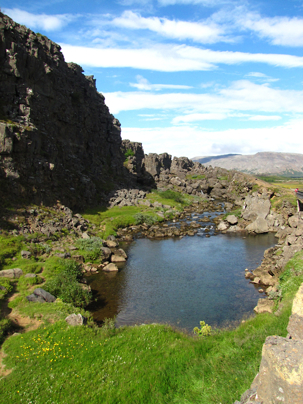 Это национальный парк, основанный на месте проведения Альтинга. Кто читал саги, знает: всякий уважающий себя исландец летом участвовал в Альтинге - общенациональном собрании. Решал государственные вопросы, узнавал последние новости, подыскивал подходящую пару своим подросшим детям, судился - вобщем, всячески самоопределялся. Без Альтинга не было бы Исландии как государства.