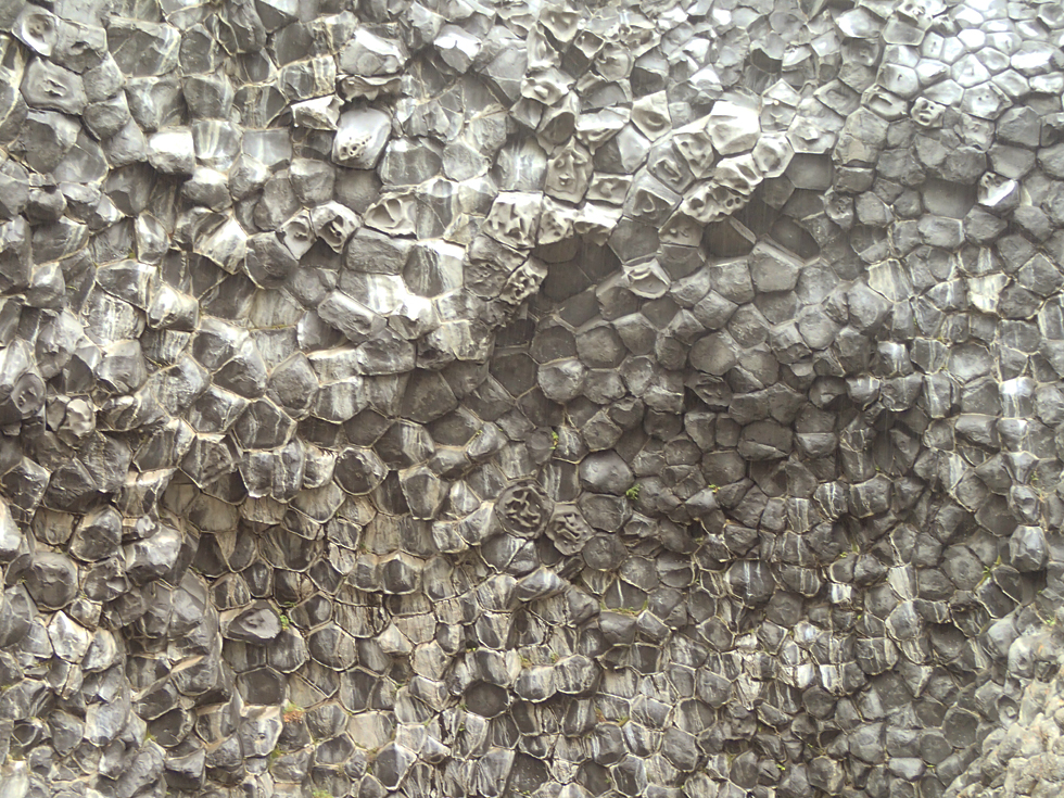 А застывает базальт шестигранными колоннами. И вот так колонны выглядят с торца.