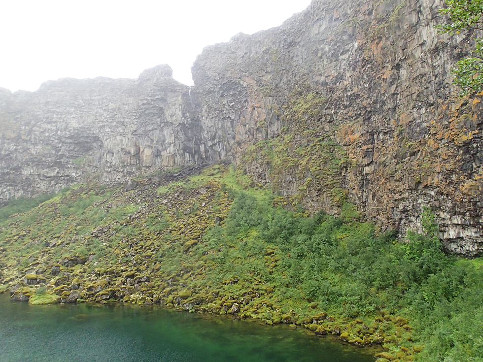 Вообще-то Асбирги — это гигантский след от копыта восьминогого коня Слейпнира, на котором ездит Один. Ширина копыта — около километра, длина — 3,5 км, след имеет ровные базальтовые края в 100 метров высотой. Внутри растет лес, поскольку пространство защищено от ветра, есть много троп, кое-где по базальту можно вылезти наверх и тоже погулять.