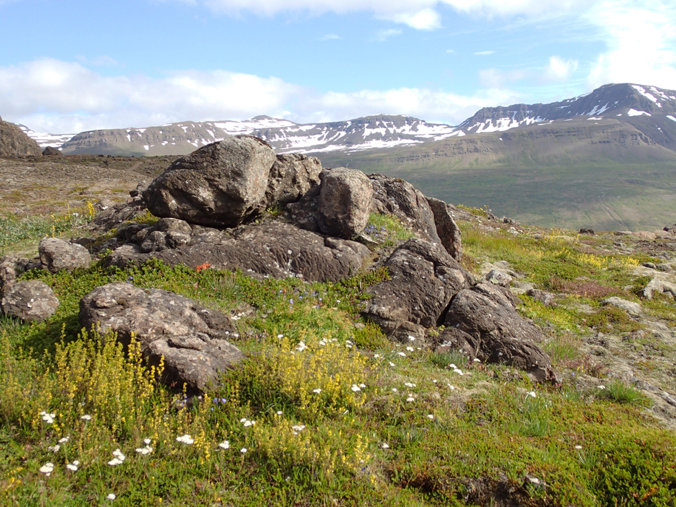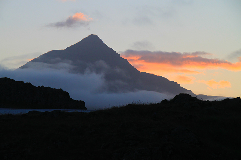 Над фьордом возвышается гора Буландстиндур (1069 м) в виде пирамиды правильной формы.