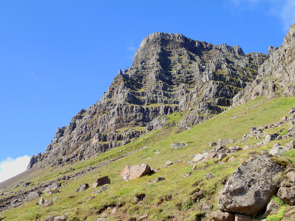 Хотели найти могилу вёльвы. Когда-то здесь жила добрая волшебница, которая завещала похоронить себя «в основании фьорда» (где же у него основание?). Люди так и сделали, а она после смерти охраняла эти земли от врагов. Надо сказать, у нее хорошо получалось. Корабль с пиратами, которые хотели здесь высадиться, унесло ветром в море. А единственный немецкий самолет, долетевший до берегов Исландии побомбить, разбился здесь о скалы.
