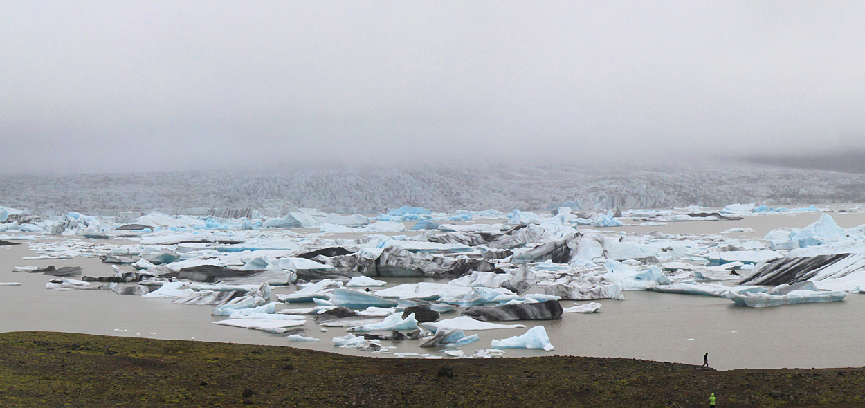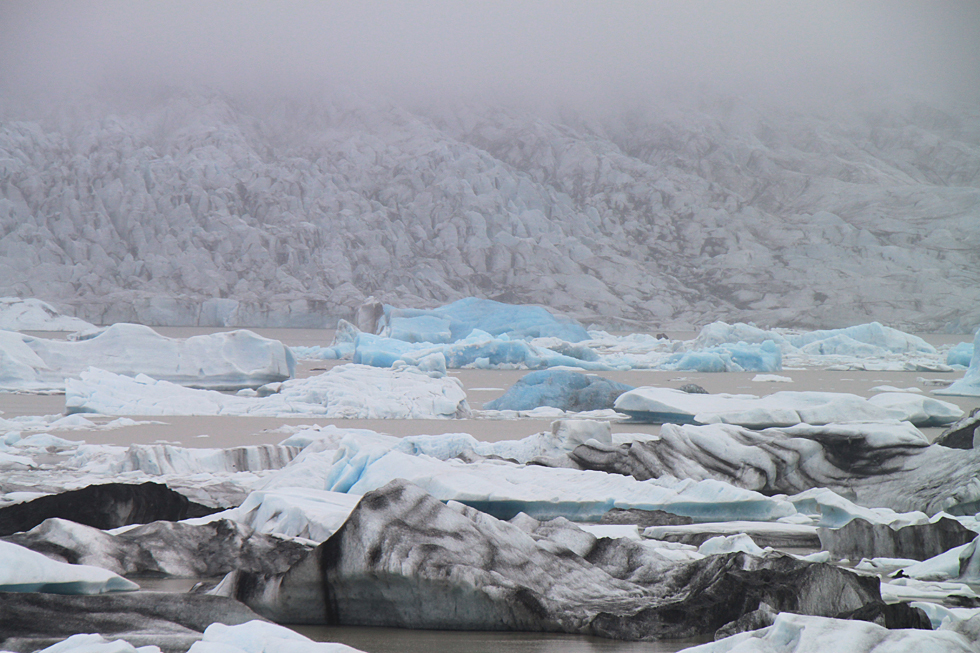 Слева от Ледяной лагуны есть еще одна, гораздо менее известная лагуна Фьятльсарлон. Повелители колес могут к ней подъехать. У нее ледник чуть ближе и виден даже в такую погоду.