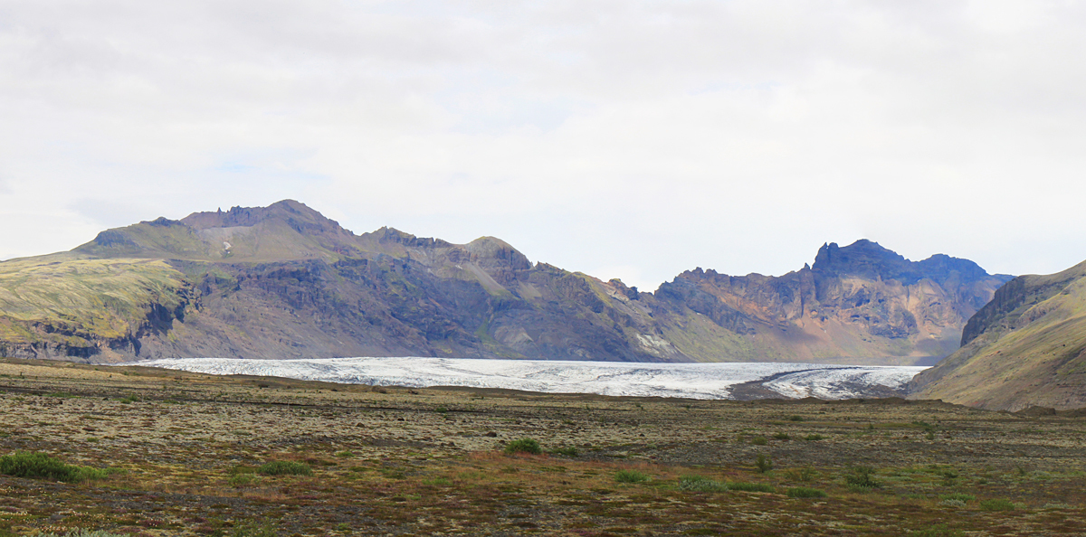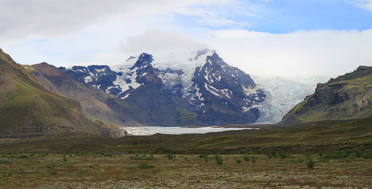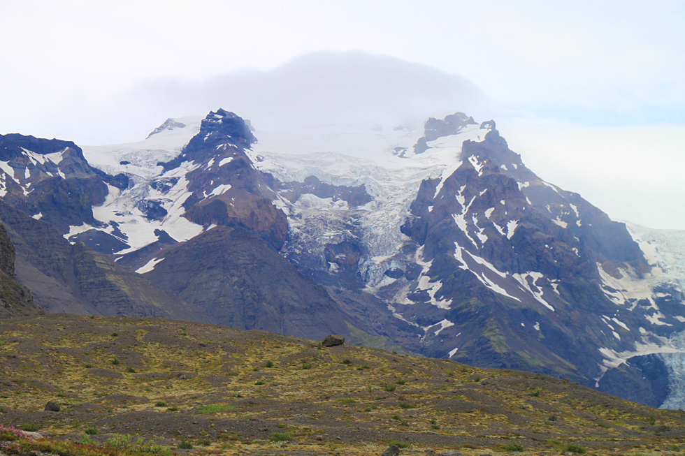 В районе ледника Скафтафетль мы попали в око циклона. То есть дождь прекратился и в облаках образовалась дырка, хотя горизонт был многообещающим по-прежнему.