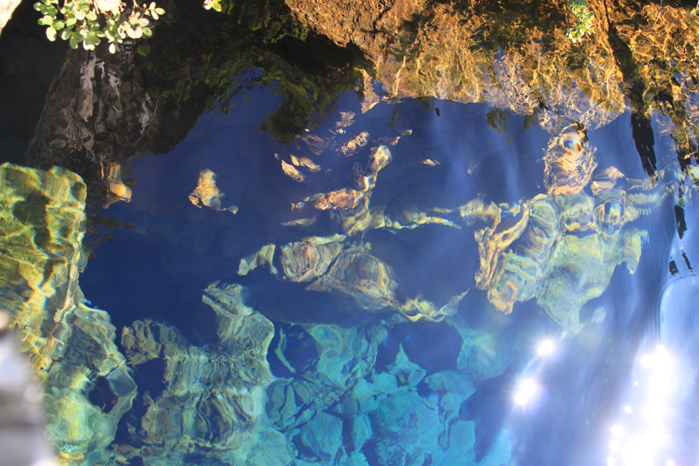 Дальше, пробираясь к скале закона, мы обнаружили место для погружений - прекрасную расщелину с глубокой голубой водой. И в ней кучу дайверов и снорклеров.