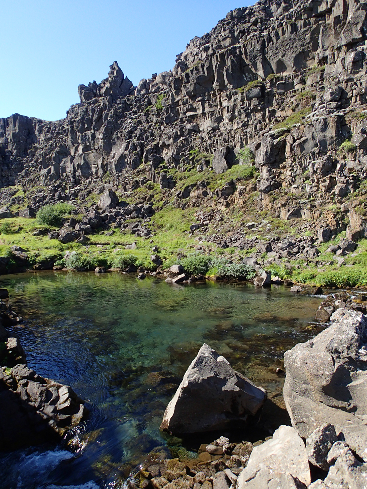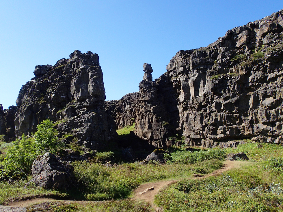 Дошли до скалы закона, потом вдоль трещины между континентами возвращались в кемпинг.