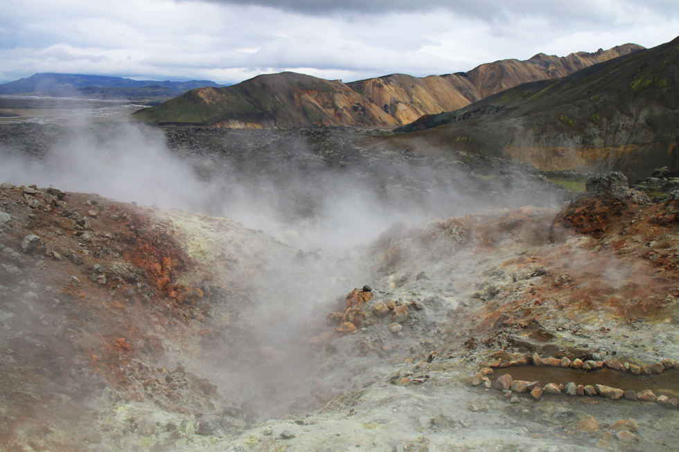 Что плохо в Ландманналойгаре — так это дикие толпы народа и кемпинг. Толпы приезжают с однодневными экскурсиями. Стоит отойти 500 метров, и они уже не мешают, но пока ты в кемпинге и пользуешься хоть какими-то удобствами — надо быть готовым к стадам и очередям в сортир. И к гроздьям тел в горячей речке.