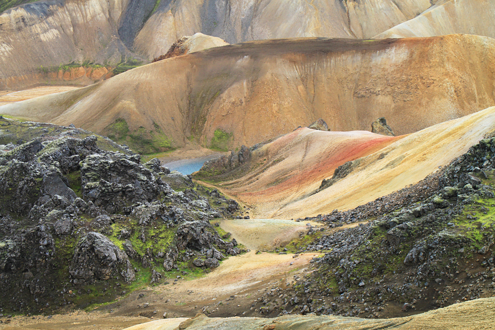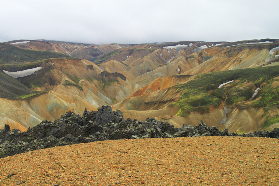 А вот и разноцветные склоны Бреннистейнсальды. Трудно поверить, пока не увидишь эти цвета своими глазами.