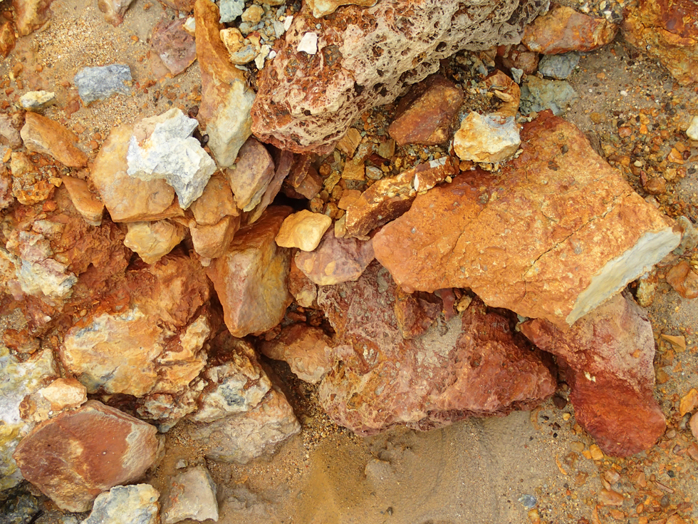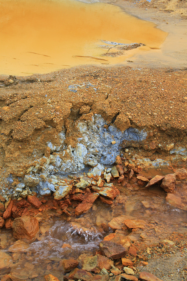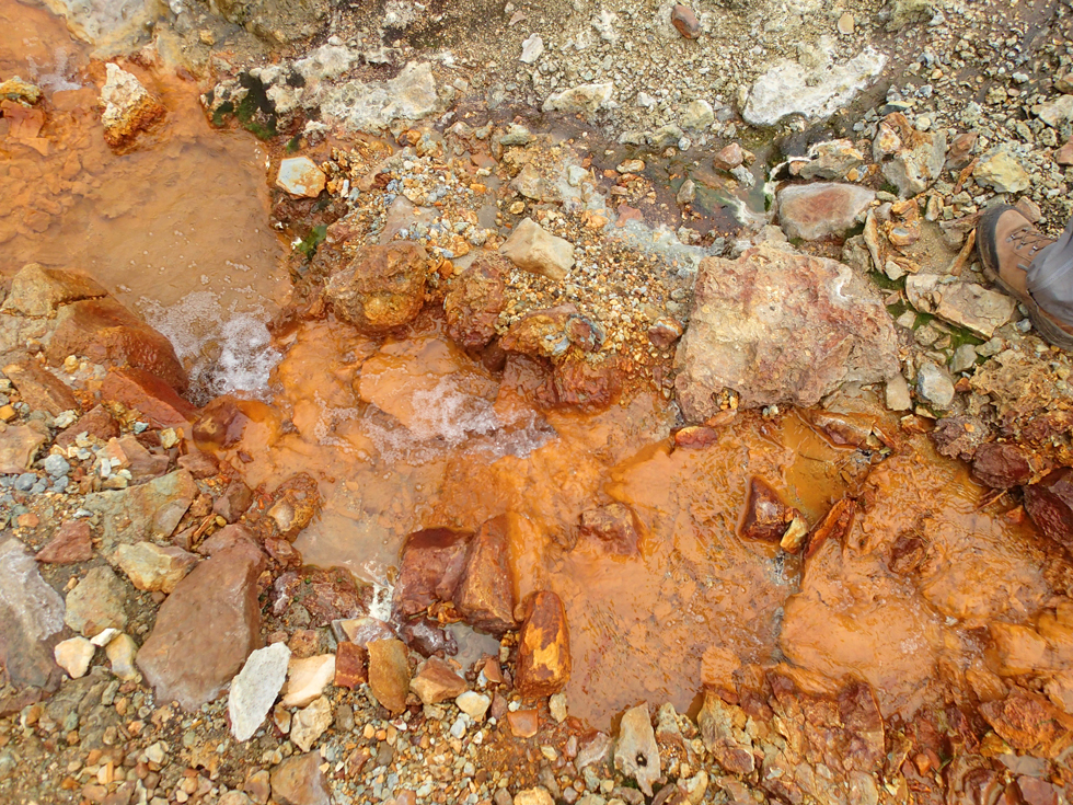 В горячем ручье были разноцветные горные породы.