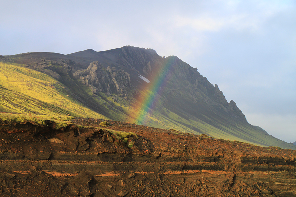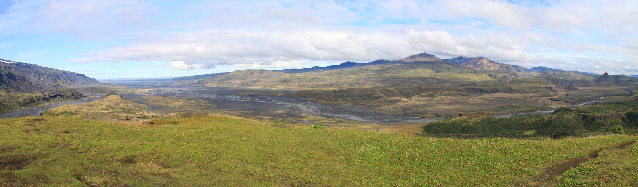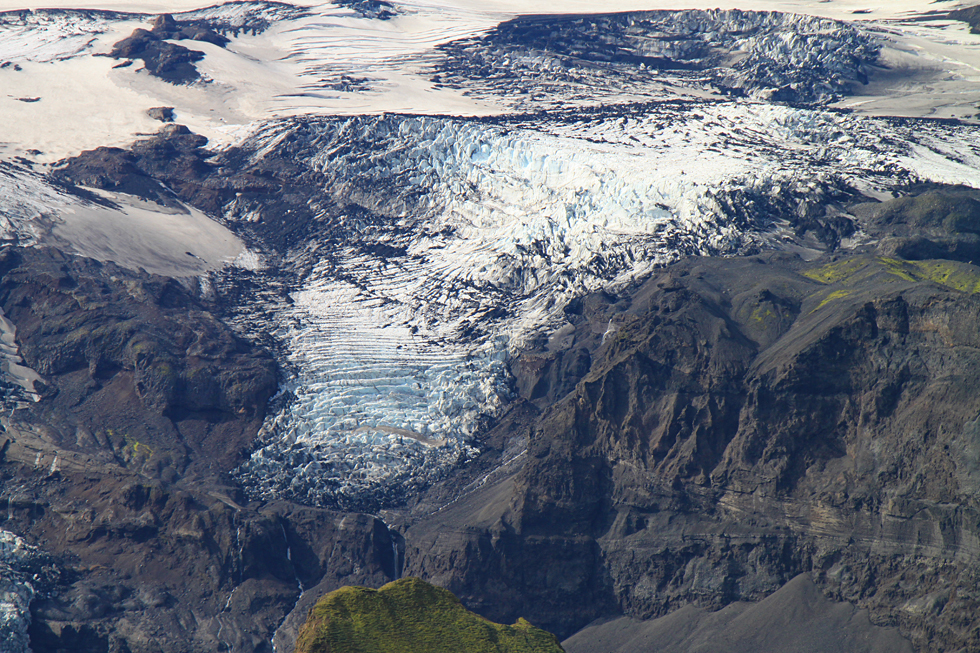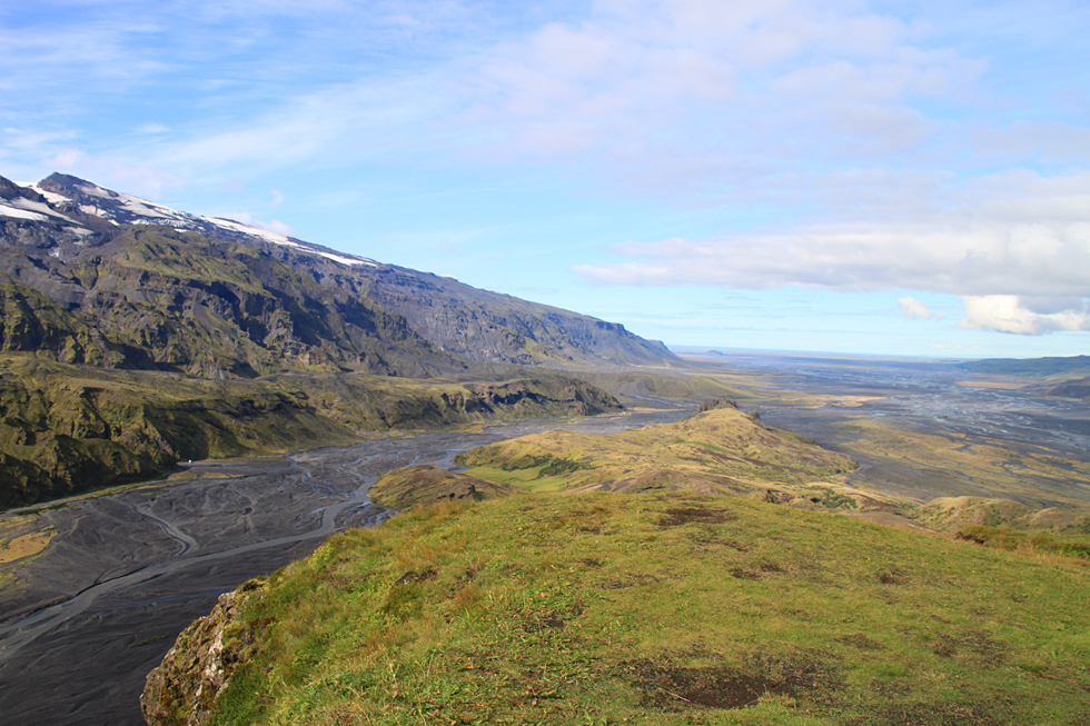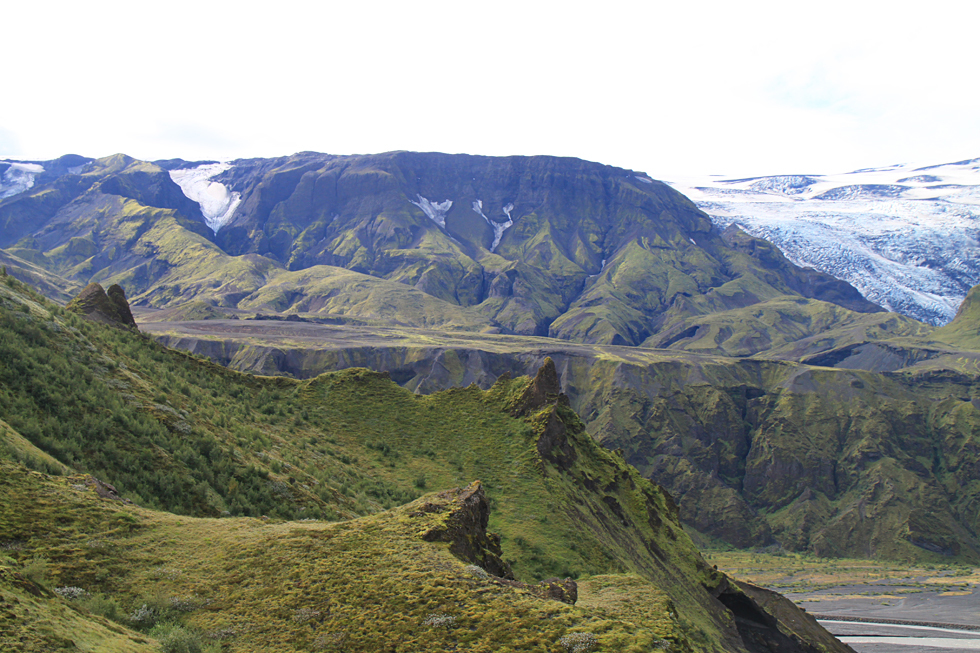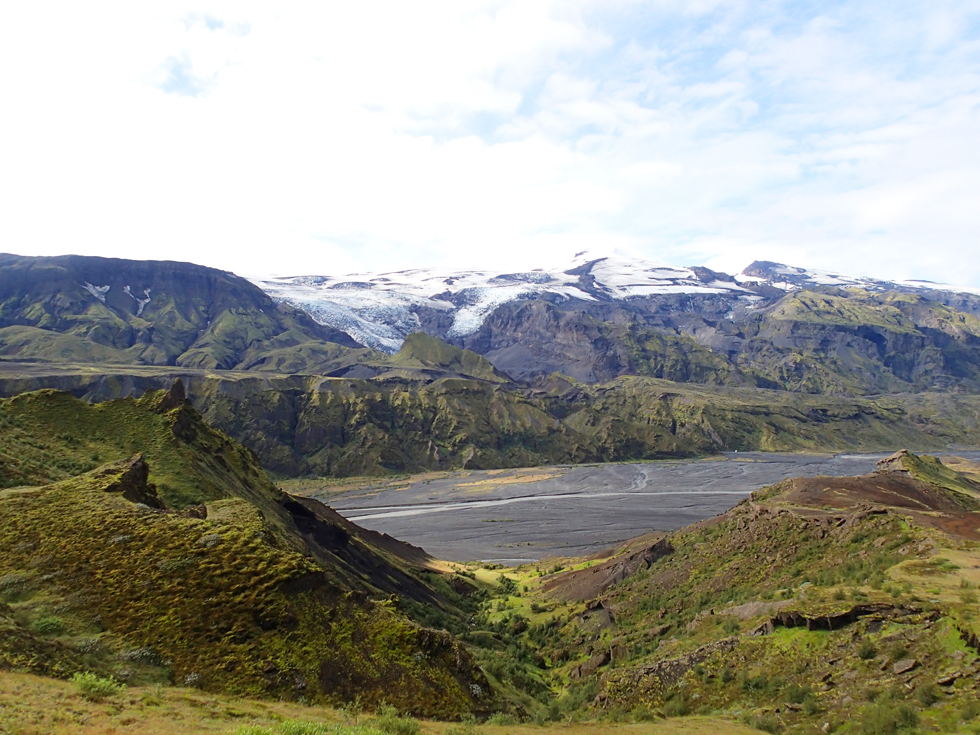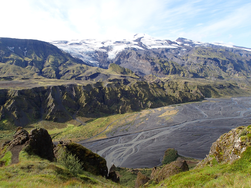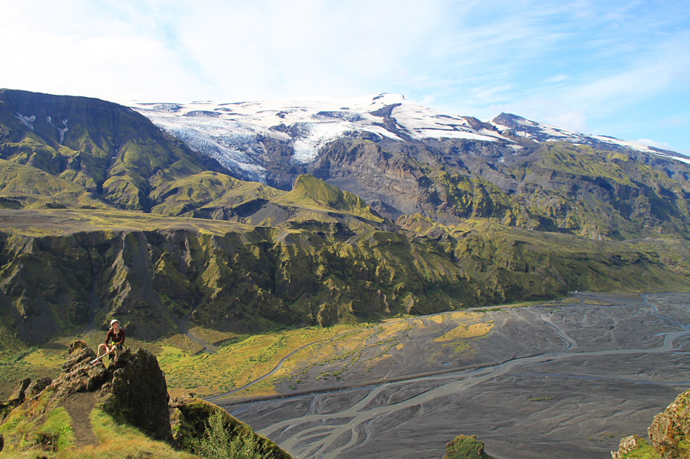 А потом мы отправились на большой холм (или небольшую горку) со звучным именем Валахнюкар. Отсюда открывается прекрасный вид на Эйяфьятлайокудль, очень красивые ледники и скалы.