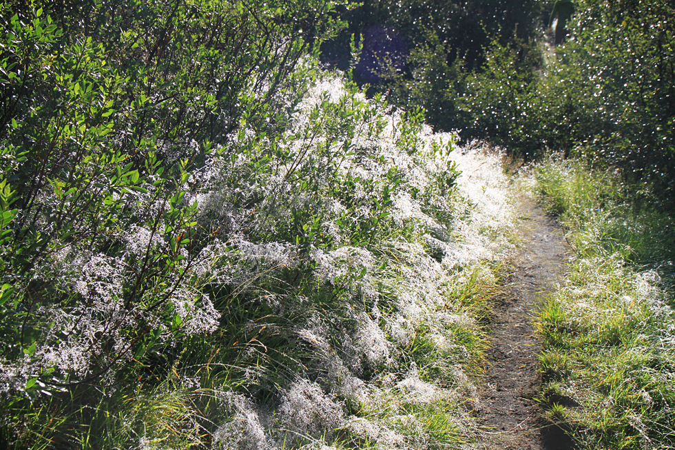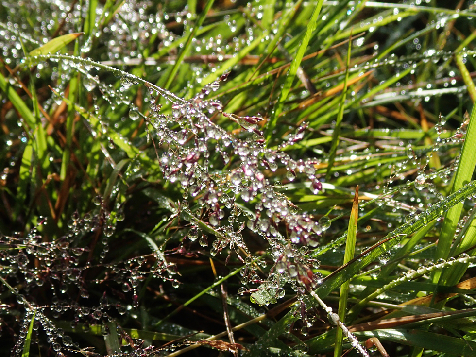 Утро было ясным и мы пошли гулять. Вокруг было много бриллиантов из росы.