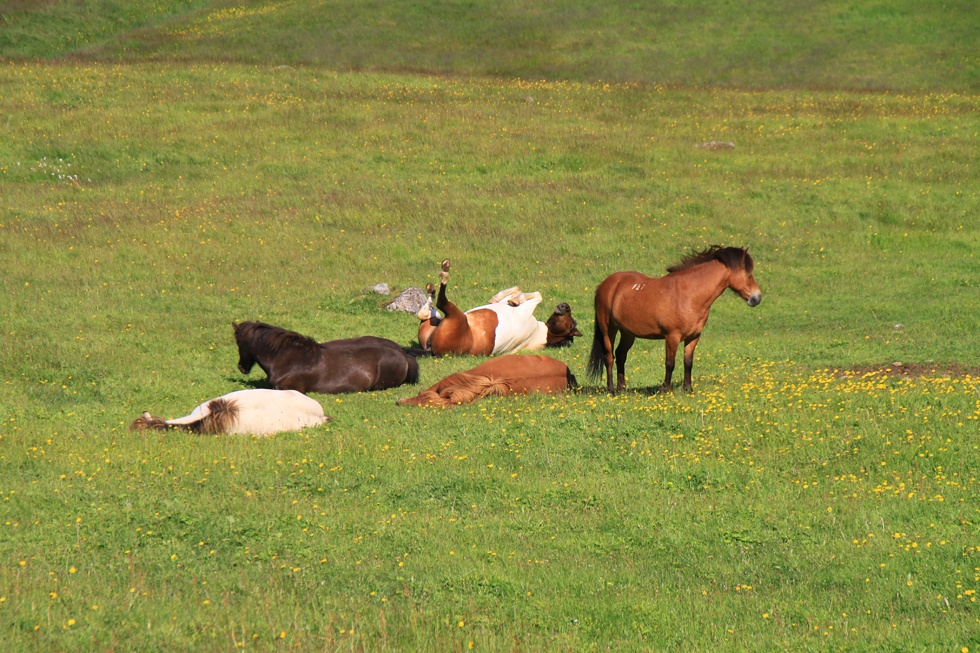 На лугу паслись и смешно валялись лошади. Позже мы с ними смогли познакомиться.