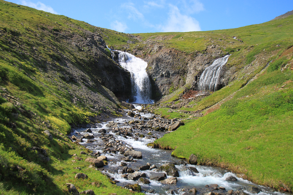 Нож-долина красивая и пустынная, в ней стоит одна ферма. А мы дошли до ближайших водопадов. Можно было и дальше подняться, но планы на день этим треком не заканчивались.
