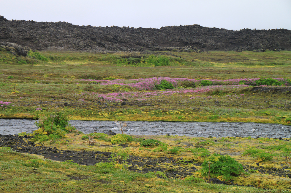 Кванна — это по-исландски «ангелика», тот самый дудник, на корне которого настаивают шнапс. Единственный условно съедобный источник витаминов. Линдир — «источник». И действительно, тут вдоль реки и небольших источников растет ангелика.