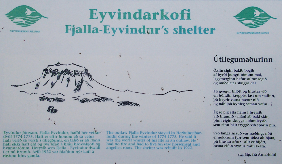 В Исландии в 18 веке жил Эйвинд Йонссон. Известно, что он был не в ладах с законом. Герои исландских саг были все как на подбор те еще разбойники и убийцы. Но Эйвинд никого особо не убивал, только скот угонял. Этого оказалось достаточно, чтобы объявить его вне закона. А это означало, что его самого мог безнаказанно убить любой желающий. Ну и владельцы овечек наверняка негодовали. Оттого удалился Эйвинд в глушь исландского нагорья и не просто выжил там, а жил долгие годы, около 20 лет. Причем ушел туда жить с женой.