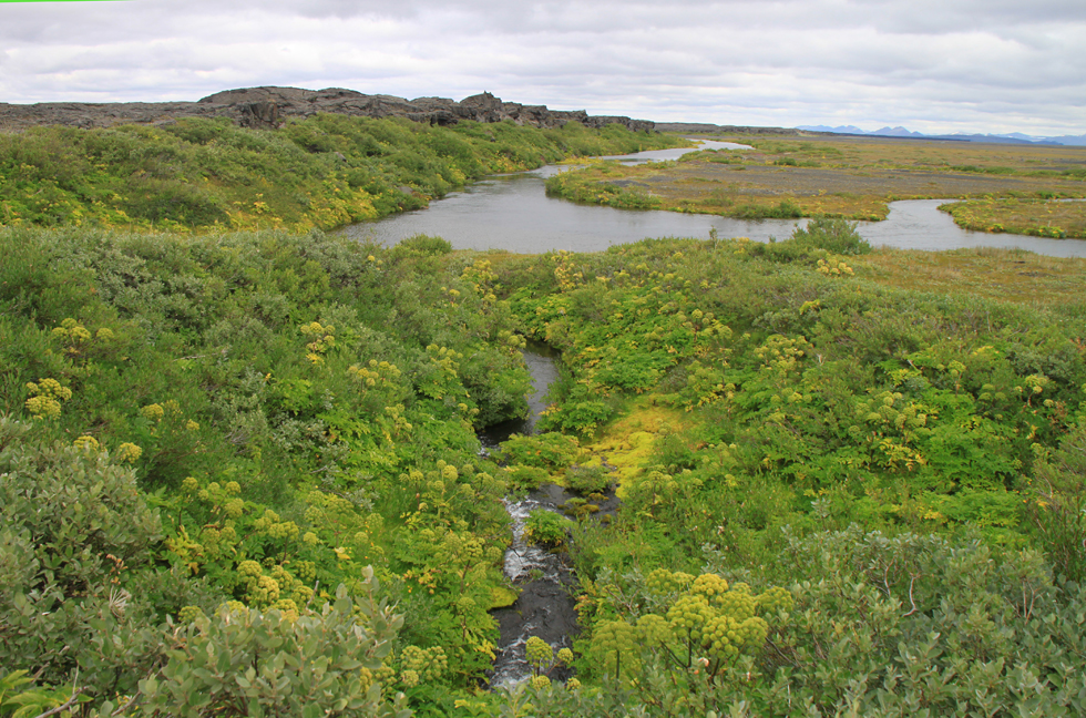 Там есть изолированный во всех отношениях участок лавовой пустыни Креппутунга. С юга он ограничен самым толстым на острове (и в Европе) ледником Ватнайокудль, с запада — рекой Креппой, с востока — рекой Йокудльса. Две реки сливаются севернее, а между ними «язык» (tunga), а на «языке» — небольшой оазис в речной долине, поросший ангеликой — Кванналиндир.