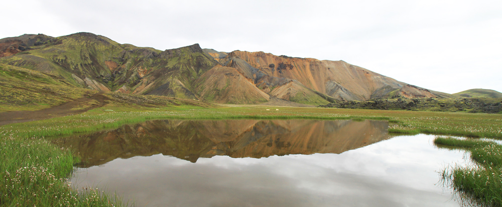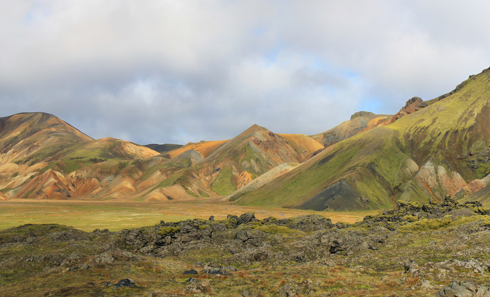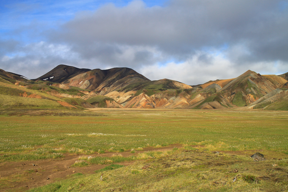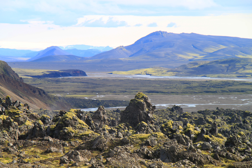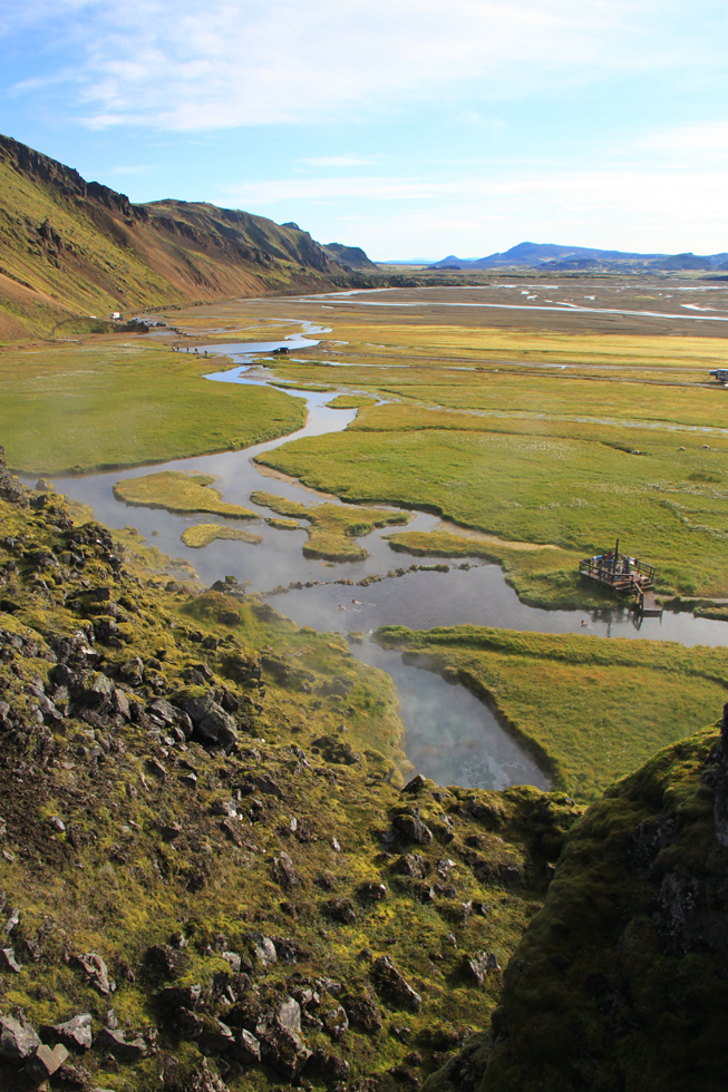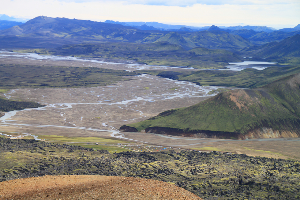 Позавтракав, мы отправились гулять по окрестностям. Вот долина с кемпингом, одним из самых неуютных, огромных и бестолковых в стране. Но все терпят, ведь это же Ландманналойгар.