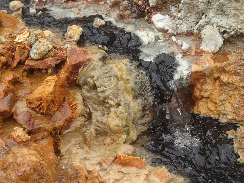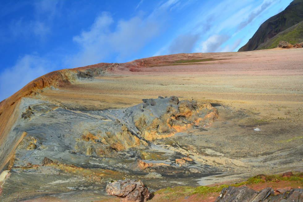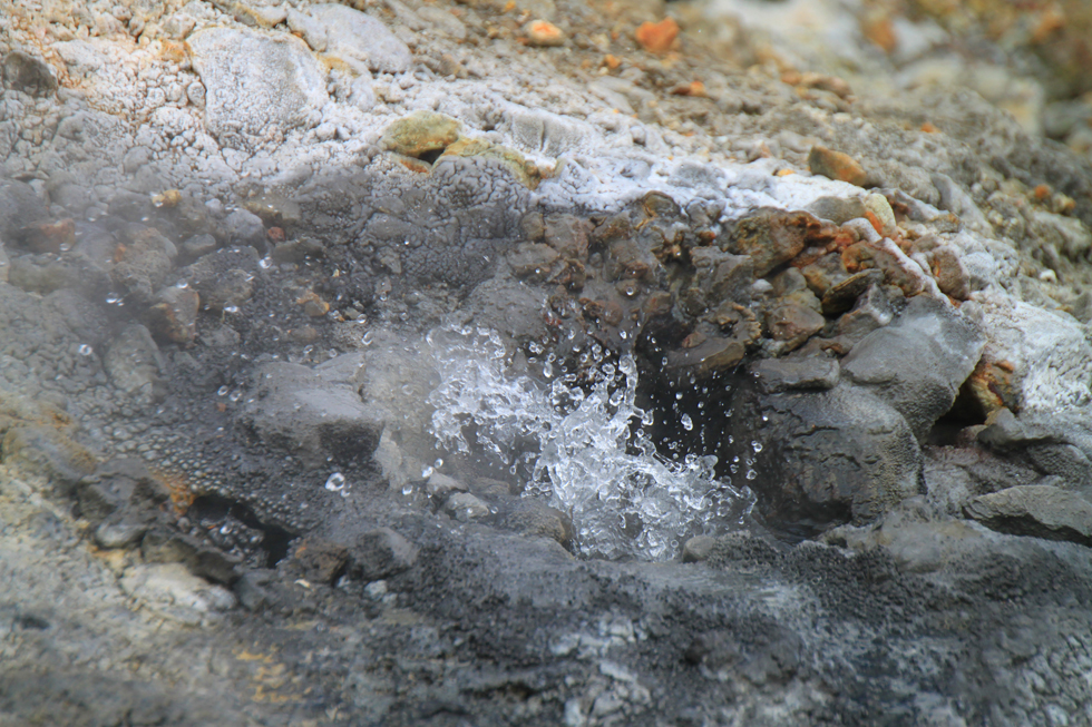 Потом мы отправились в маленькую долину гейзеров. Назвали ее Долина Кипящей Кастрюльки: перед входом в долину теперь на ровном месте сформировалась одна бурлилка, в которой очень удобно готовить. То есть три года назад ее не было, и даже год назад, кажется, тоже. На обратном пути мы там разогревали жареную курицу: ее в Хусавике завернули в непромокаемый пакет, так вместе с пакетом мы сложили куски курицы в «кастрюльку» и разогрели. Очень удобно. Хотя в этих гейзерах нет ста градусов и варить что-либо очень долго. В прошлом году ставили такие эксперименты.