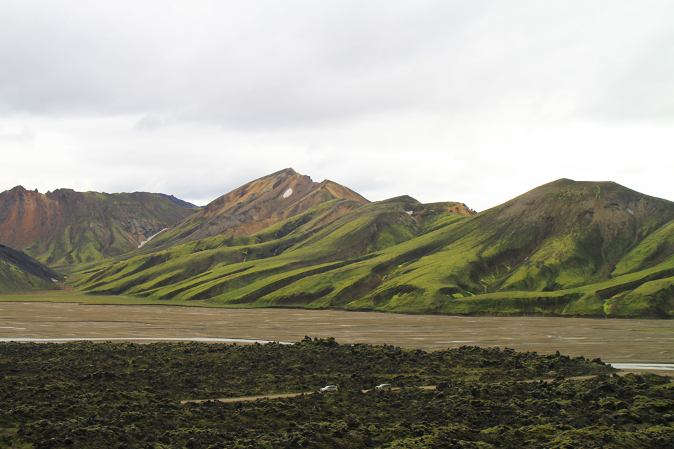 С севера нет разноцветных риолитовых гор, зато в этот раз мы разглядели там ледник.