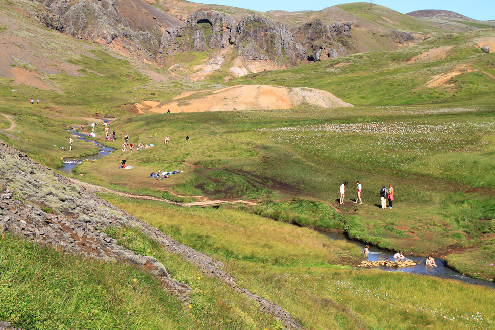 Благодаря немногочисленности людей в Исландии и бережному их отношению эти свойства земли не изменяются, даже если людские поселения плотно соседствуют с эльфийскими землями. Понятно, почему исландцы запрещают строить трассы в таких местах. Держат ум открытым. Мы сравнивали потом свои ощущения от разных мест. На Миватне, например, очень тесно рядом живут и люди, и эльфы, и камни. На юге острова тоже. А есть места без людей, но с эльфами (Латрабьярг, Восточные фьорды). А есть только камни. Вот в песне про Спренгисандур поется про эльфийскую королеву, но я не согласна: не могло быть там эльфийской королевы, не те места. В центре острова царство камней. В том же Кверагерди по дороге к горячей речке эльфийская территория заканчивается — и начинаешь уставать, поскальзываться на дороге, вязнуть в болоте в речной долине. Все равно ходим, потому что горячие речки в жизни — редкость.