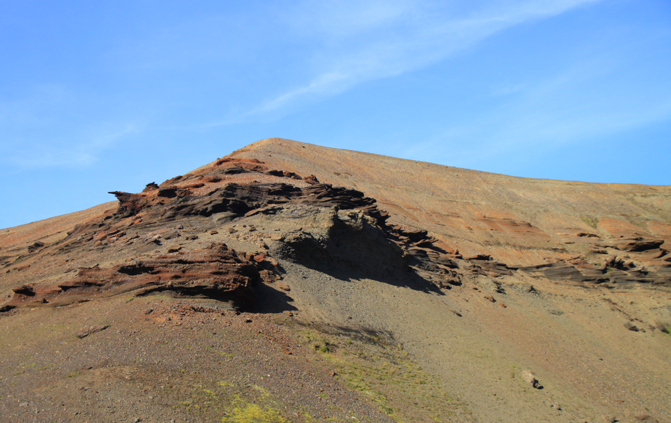Разноцветная только верхушка горы. Внизу нет таких переливов.