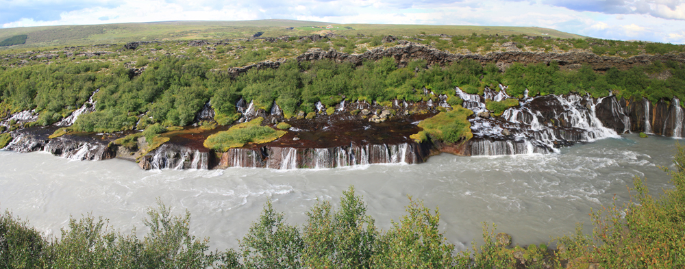 Вся хитрость в том, что в реку падают они из-под слоя лавы, сверху воды, как видите, нет.