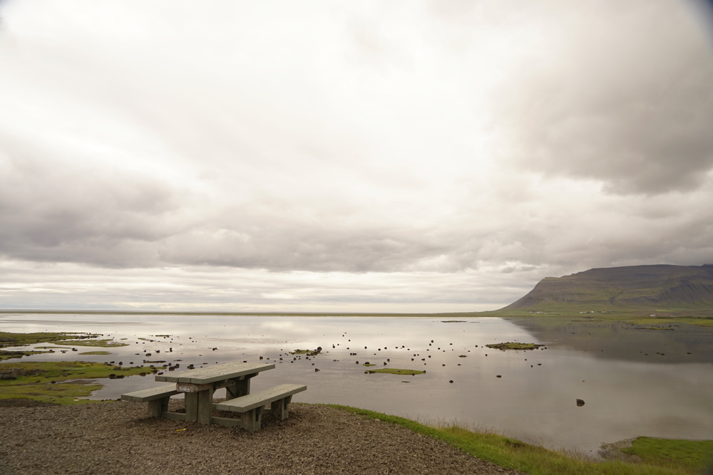 Утром в Брейдавике было пасмурно, поэтому мы сварили каши в теплой кухне и выехали вон. Возле кемпинга я увидела очень символичную картину. No comments, как говорится.
