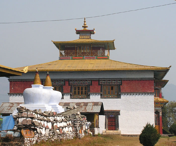 В начале 18 века местные жители увидели, как радуга соединила гору Канчендзонгу и вершину холма, и построили ступу там, где упала радуга, а рядом храм: