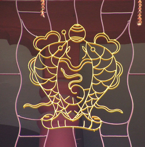 В Сиккиме везде буддийская символика — на панелях домов, на автомобилях, на решетках: