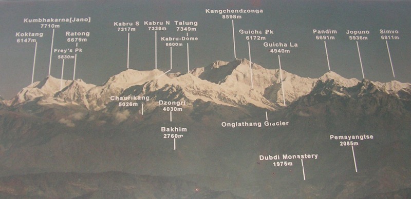 я поискала на горизонте Канчендзонгу, но на ней висело облако. И вот, когда я уже спустилась с холма вниз, она-таки выплыла из тумана ненадолго: