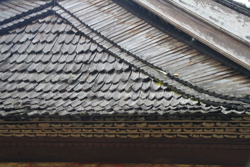 Он покрыт бамбуковой черепицей. Она мне напоминает осиновое покрытие куполов на наших северных церквях.