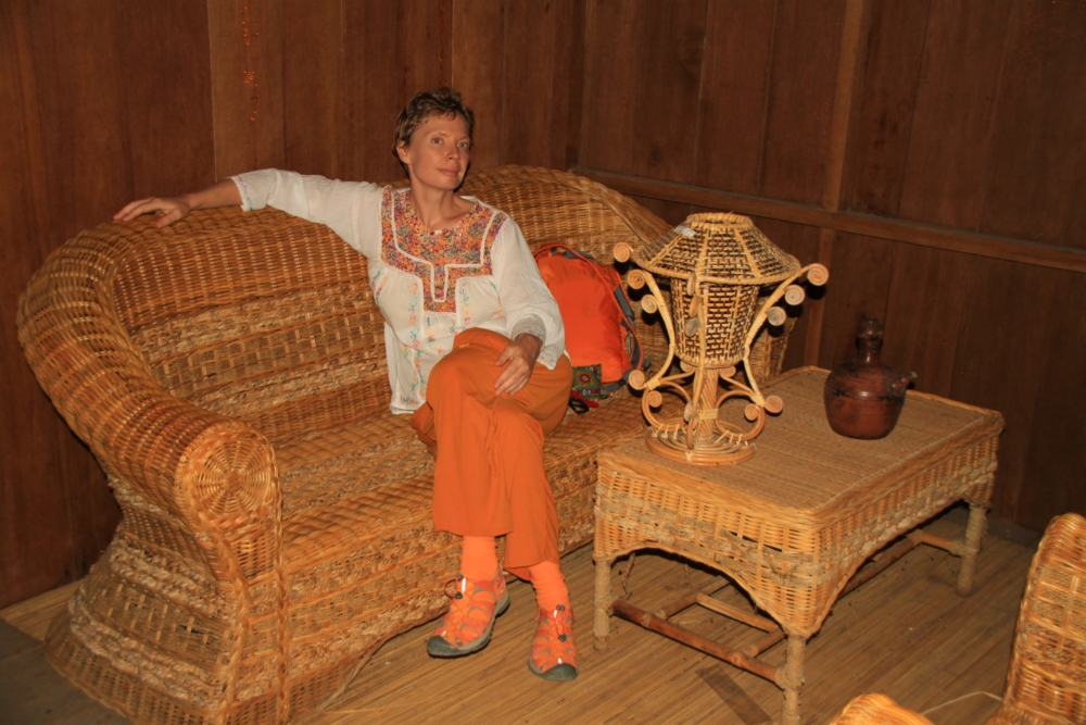 Дойдя до суматранского дома, мы поняли, что обладатель костюма должен был сидеть вот на таком веселом кресле. Кресло, можно сказать, тоже с рогами.