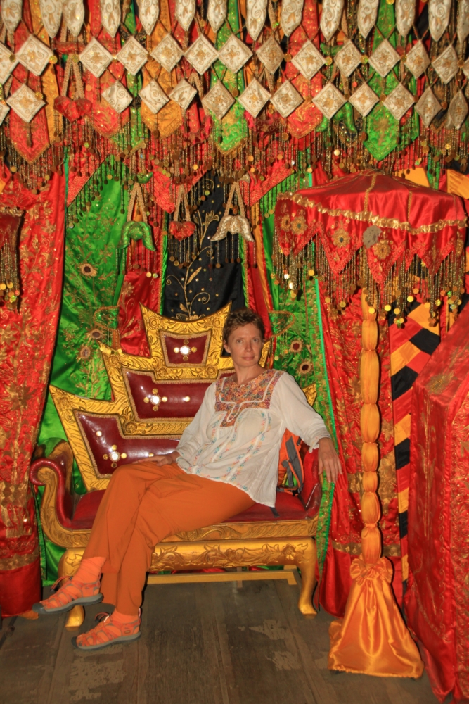 В одном из домов собраны национальные костюмы, в которые можно нарядиться. Я выбрала себе костюм Суматры. Мне идут рога? :-)